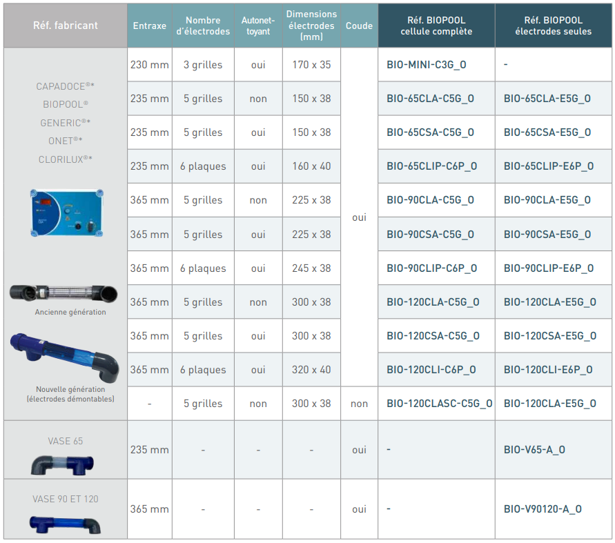 Électrodes seules sans vase ORIGINALES BIO POOL pour électrolyseurs de 65 à 120 m3